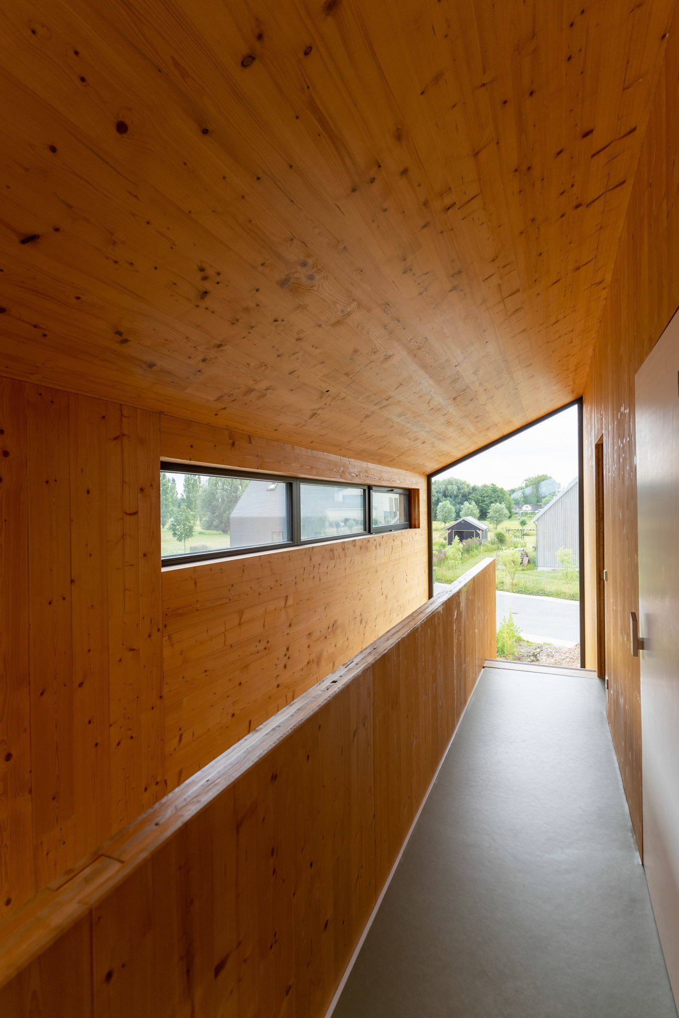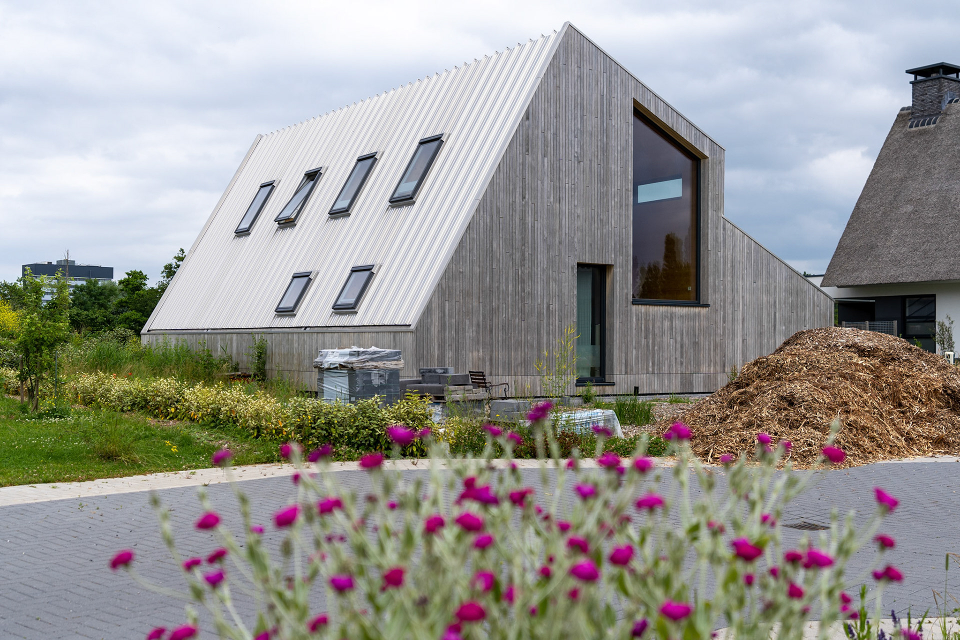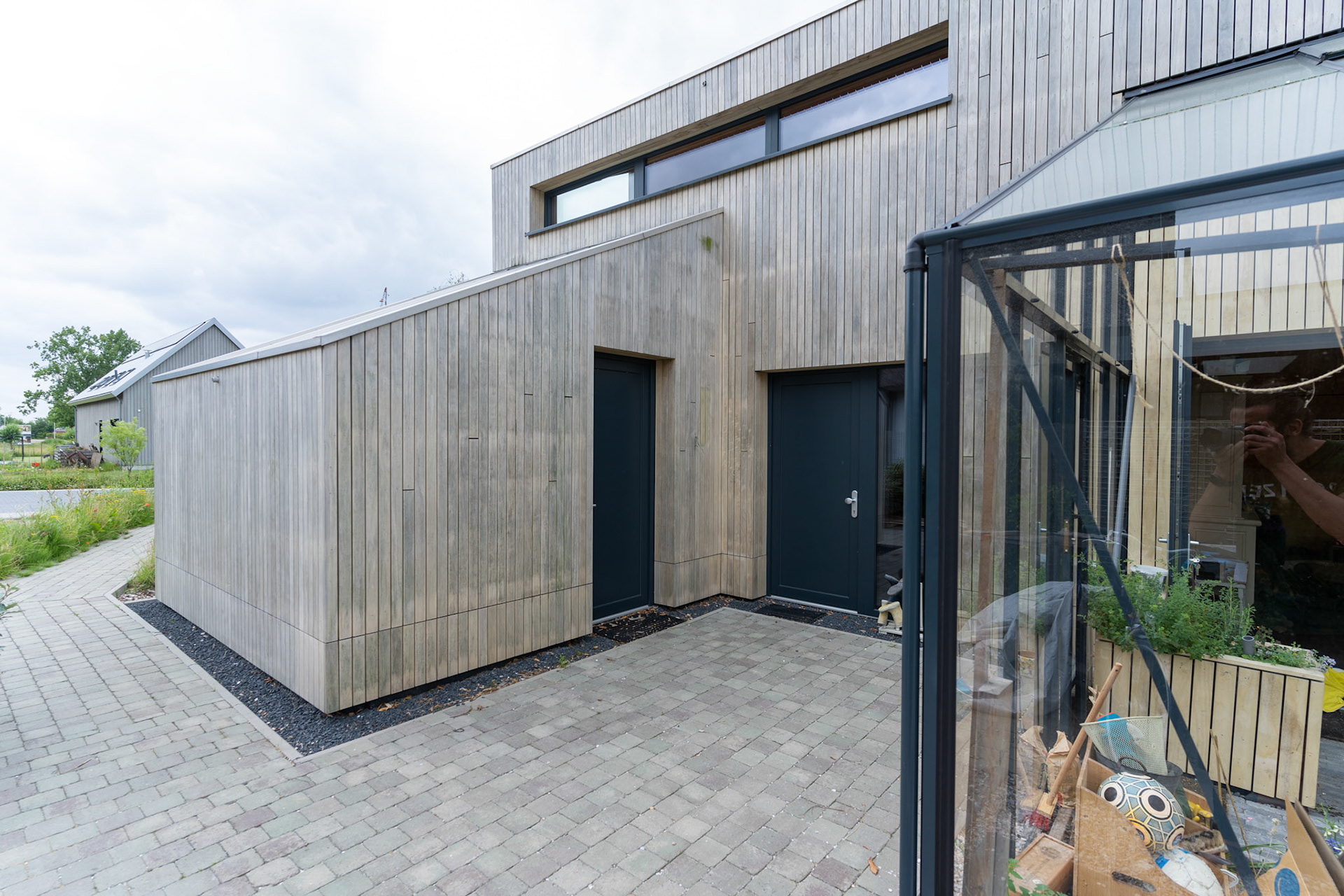 Deze woning is met kruislaaghout gebouwd. Hiermee is het mogelijk om een vide in langsrichting van de woning te maken, en gevelopeningen van wand tot wand en vloer tot plafond. Team: Job Schroën en Mauric Bohle